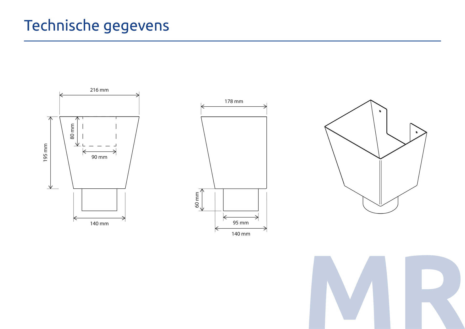 Aluminium Vergaarbak Vierkant 200x250 Ø100mm Grijs